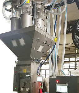 Arranging Gravimetric Dosing Mixing System with an adapter on the extruder directly ,this installation needs to convey raw materials once from storage to system by vacuum loader.